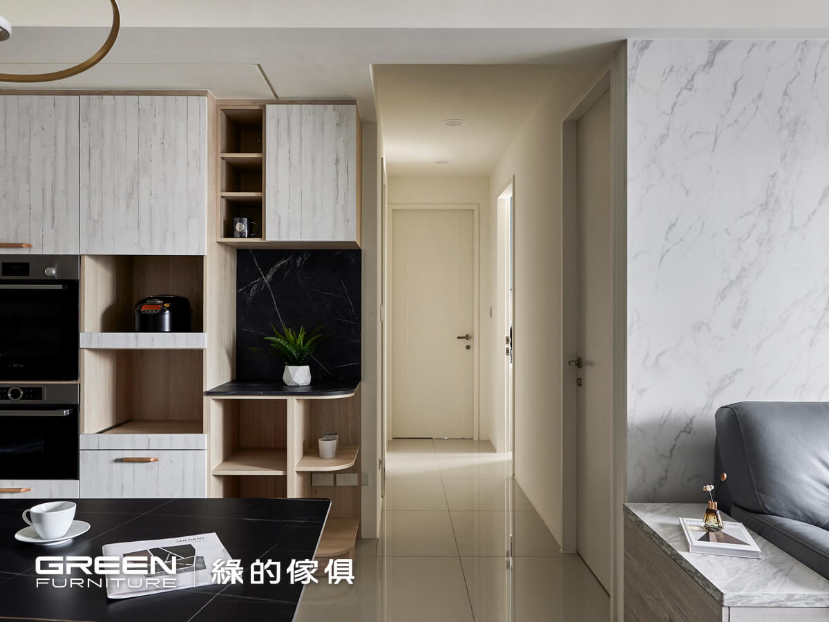 設計師表示,男主人忙於工作和照顧太太生產、坐月子,「綠的傢俱」品質優、效率高,空間的串連上注重設計感,不但令他很滿意,更是雀躍地想儘快住進美好的嶄新居家環境。