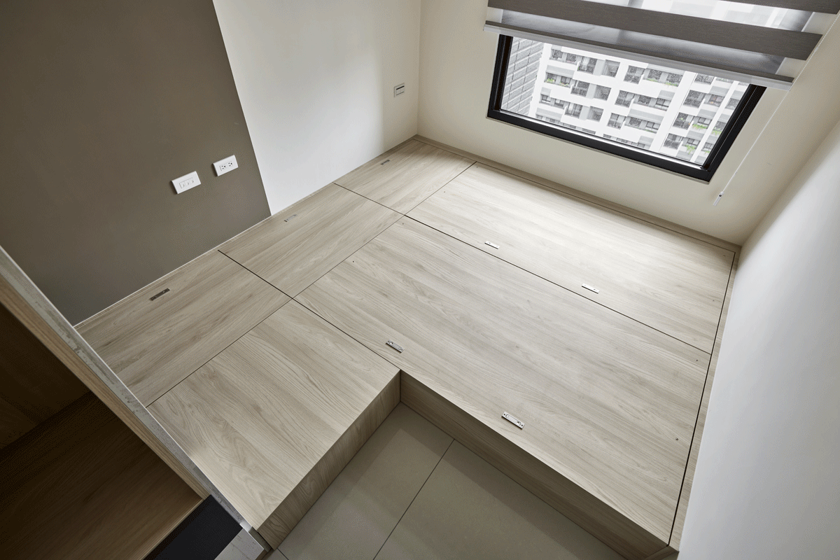 迎接人生重要的喜慶時刻,「綠的傢俱」發揮不凡的巧思能匠,打造一家子的幸福窩,在木紋木質的沈穩基底上,交織開放空間的黑白經典與主臥室的輕度奢華風格,吳先生、太太歡喜帶著新生兒入住,歲月靜好,在一盞燈、一方櫃、一室藏寶物、打地舖兩相宜的和室中。