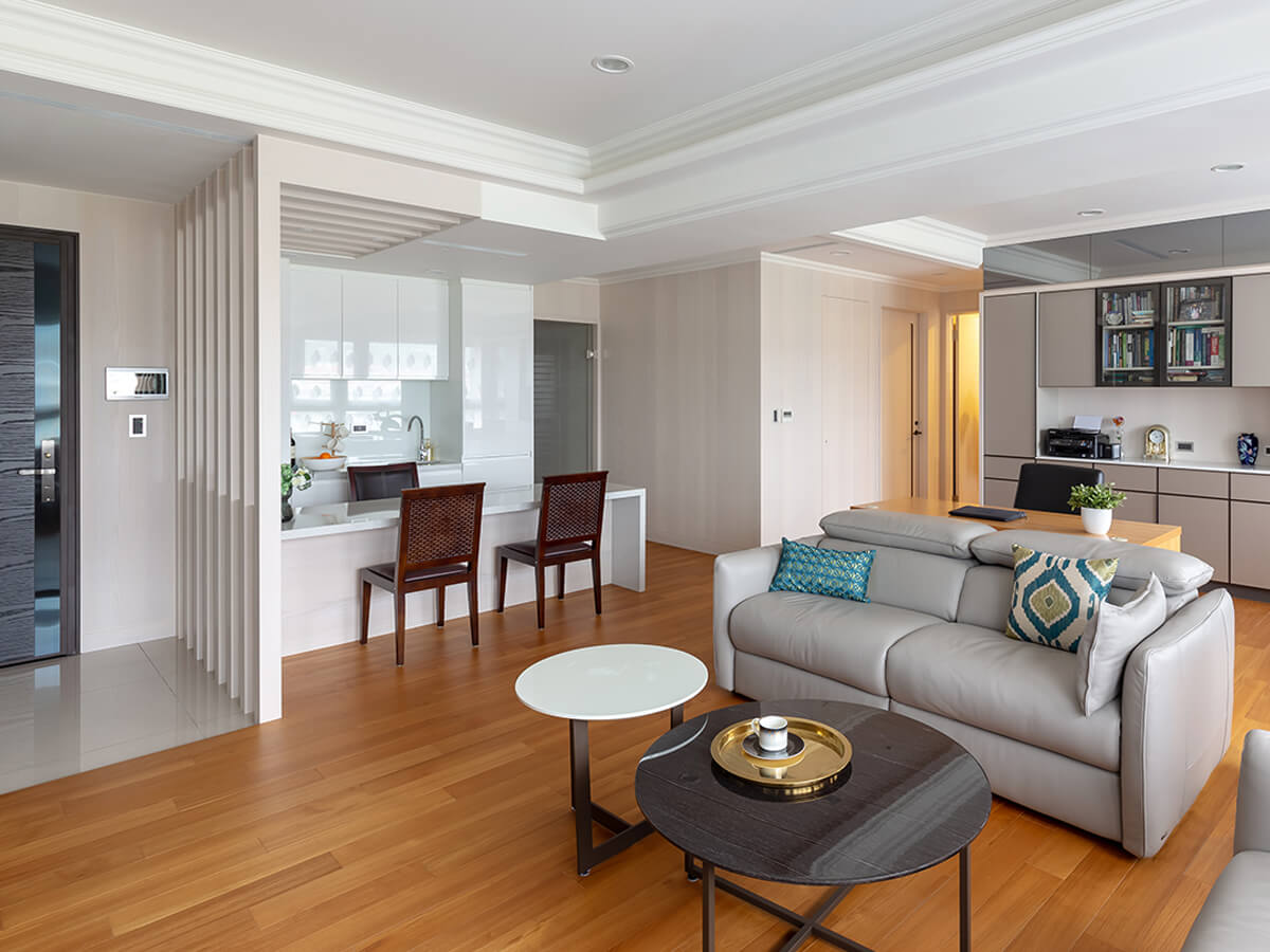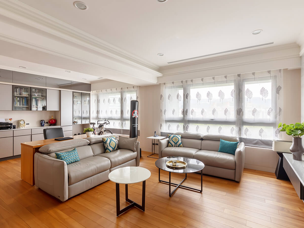 「我們年紀慢慢大了,雖然還沒那麼老,但想預先做足準備,」溫文儒雅的鄧醫師觀念開明,一點也不忌諱逐漸邁向熟齡的事實。他從需要爬上爬下的「樓中樓」大宅,換至本棟擁有物業管理的60坪住宅,就是希望能在設施完善、符合自己需求的空間中,優雅地享受熟齡生活。