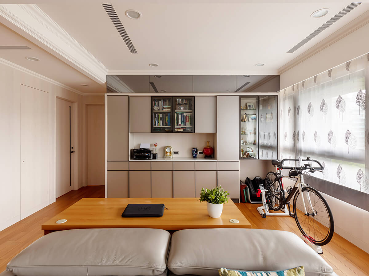 平常男主人從下午開始看診,直到晚上八、九點才下班,工作緊湊,也很耗費體能。「打拳能維持身體的靈活度、肌力,腳踏車則訓練心肺,墊上運動可以鍛鍊我們的核心肌群…」鄧醫師一邊聊著最拿手的專業,一邊笑說自從搬進新家養成持續運動習慣,他明顯感到身手變得更敏捷,身體又回復到以前的狀態,甚至還瘦下兩、三公斤。