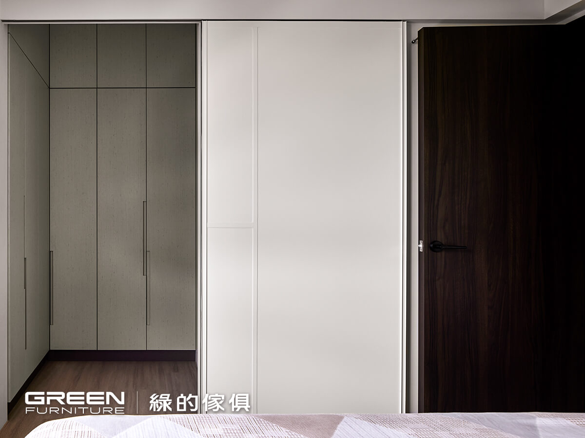 書房直接採用半開放式的設計,透過半高的玻璃隔間牆,從書房看出形成自然的客廳端景,書櫃增設滑軌門片,不需要時可以拉上門片,讓心愛的收藏及書籍得到更完善的照顧,整個書櫃牆面也不會因收納影響視覺整齊度,保持乾淨、俐落的空間效果,打造素雅、寧靜的書房氛圍。