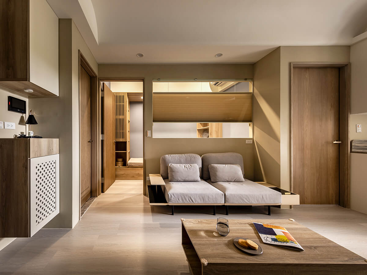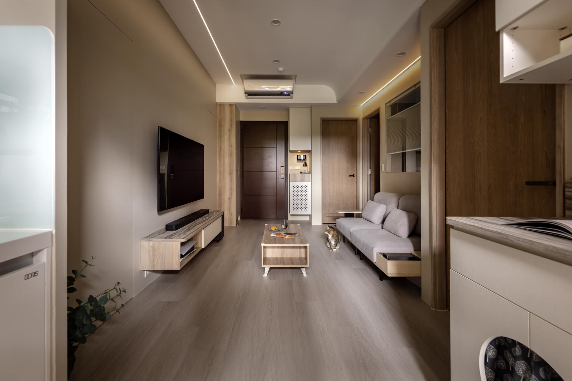 小又暗,是小宅裝潢經常要面對的課題,「原本建商規劃做三房格局,但其中一房完全沒有採光,陰暗又狹窄,空間感遠不如實際坪數,而且也壓縮到客廳空間。」吳先生無奈說道,正因如此,如何化解封閉感、增加光線,便是他們第一訴求。