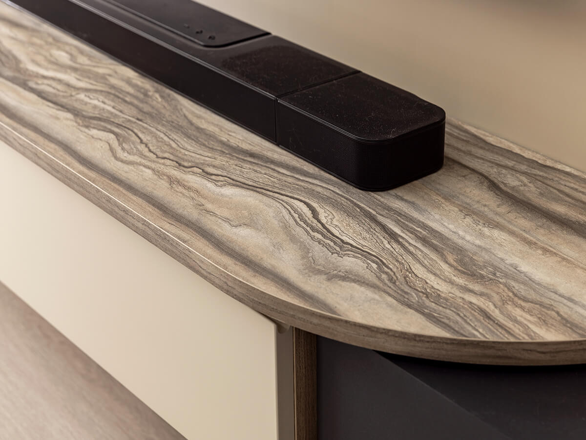 聊及當初為何選擇「綠的傢俱」?夫妻倆直言不諱地分享,當時也曾詢問過他牌系統傢俱,只是對方設計師的思想太過前衛,「他們給的設計建議是將牆面全部拆掉,也用不著擺放沙發,這樣就能釋出空間感,但可能我們比較傳統吧,覺得客廳還是要有沙發,不然長輩來無處可坐。」