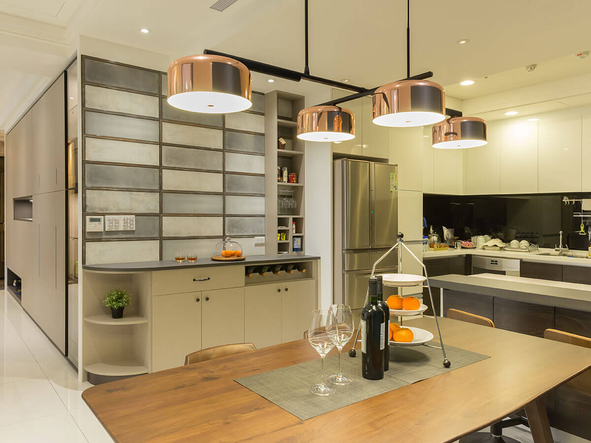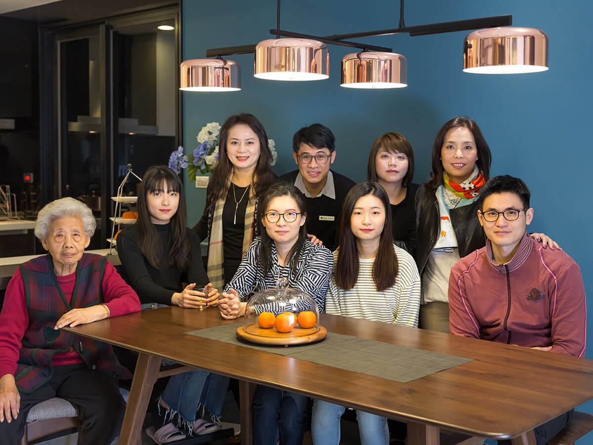 圍坐在邱先生一家人最常聚集的廚房長桌邊,簡約但充滿設計感的吊燈,流洩出溫暖光暈,把每個人臉上的笑容,映照得特別明燦。