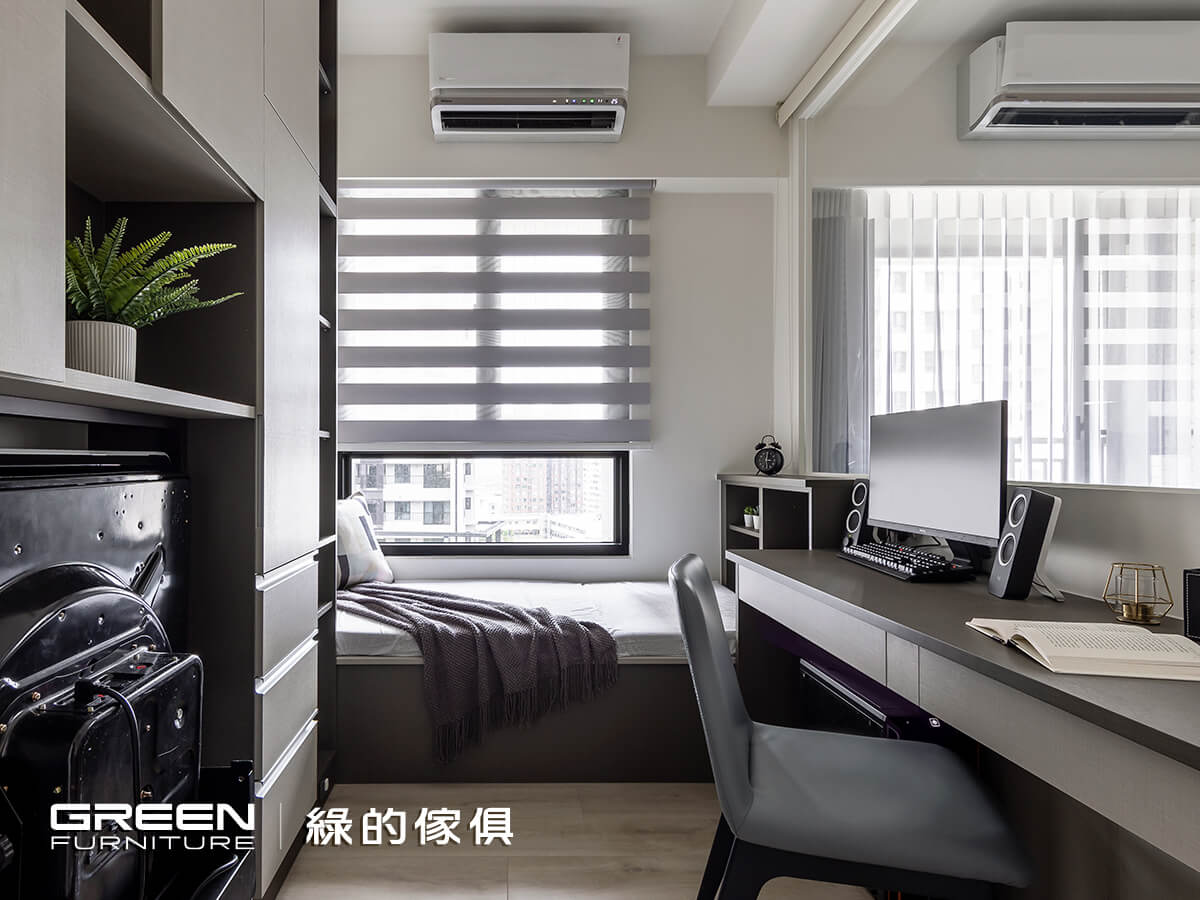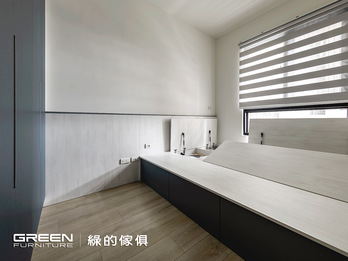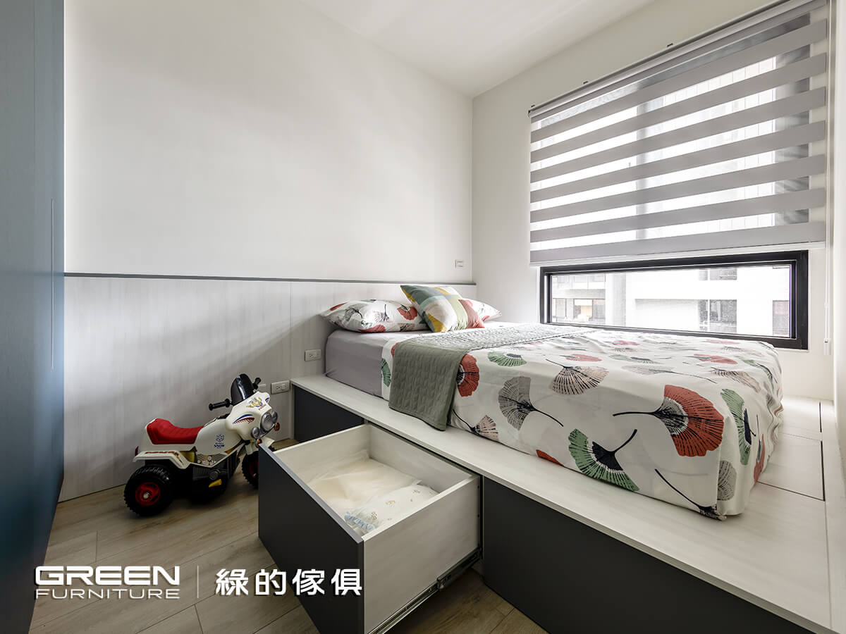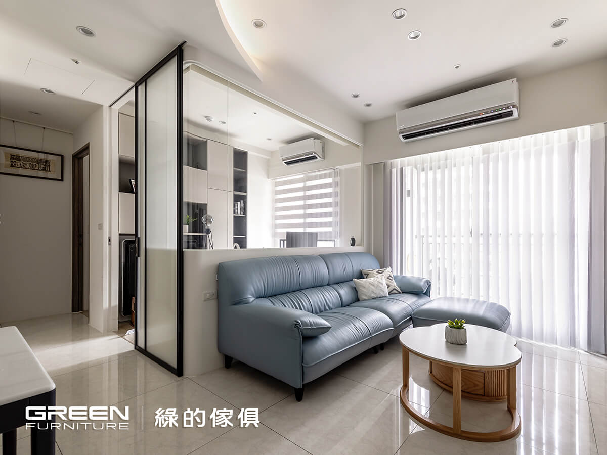 育有一兒的陳氏夫妻,對室內空間的開闊、收納與安全性特別重視,希望小朋友可以無拘無束的在家裏頭奔跑玩耍。也因是別具意義的第一間房子,在尋找室內設計公司時,立刻想起家人長期使用,並且價格透明又親切好溝通的「綠的傢俱」,極佳的品牌信譽令他們感到放心,而成果也確實遠超乎預期。在經過縝密細心的配置後,一個簡約清爽、穿透明亮的家逐漸顯現,而每個角落以圓弧妥帖修飾,讓身為父母的他們感到安心,使一家三口過上美好生活!