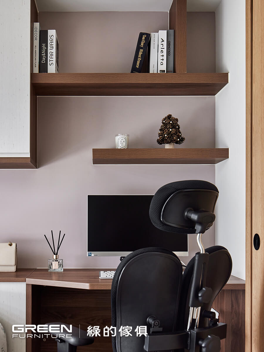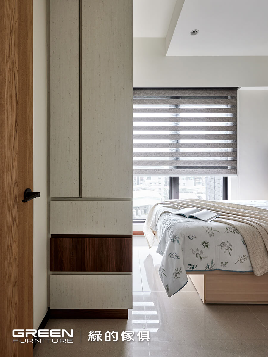 這些看似微小的設計,其實都藏著綠的傢俱在系統傢俱與生活動線上的深厚功力。從機能到美感,打造出符合日常習慣的主臥室設計,就算坪數有限,也能讓空間發揮最大的實用價值,真正落實「住得剛剛好,也剛剛好喜歡」。