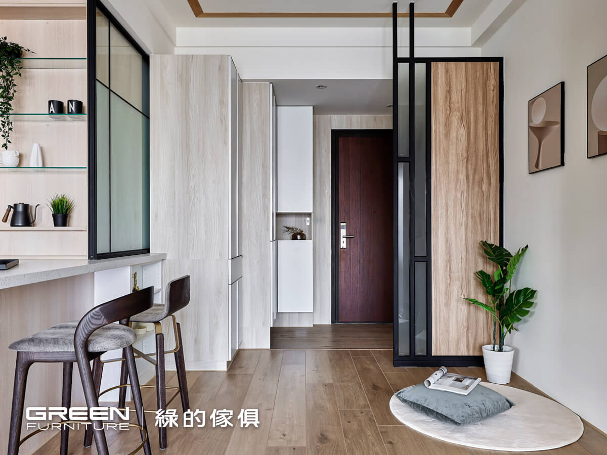 擔任工務驗收主管的屋主廖先生,長久以來擁有「放大鏡」般檢視細節的專業能力,不論材質、結構、品質都難逃他的法眼,自己的新家更須配合堪輿學趨吉避凶的要求,同時把空間設計打造成渴望的北歐簡約風,因而,只有「綠的傢俱」整體規劃設計獲得他的青睞,事實也印證他的抉擇與信託值回票價,成就美好新居所。