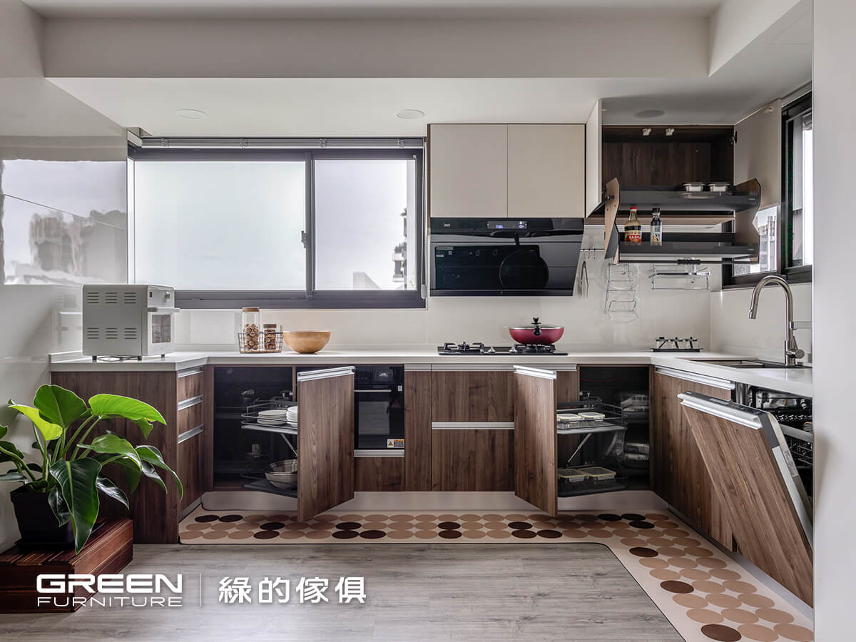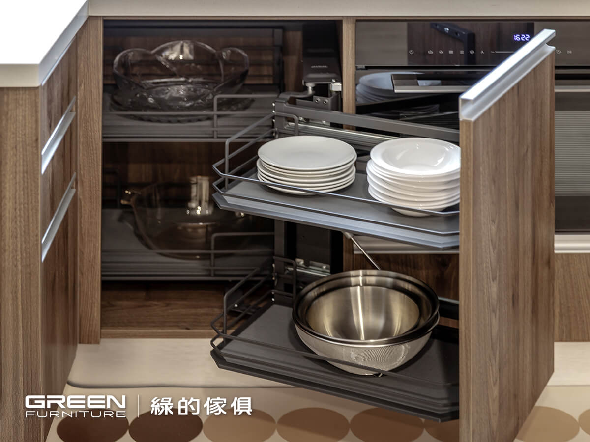 為了滿足宴會級的料理需求,特別設計了充裕收納,並兼顧長輩使用的便利性: