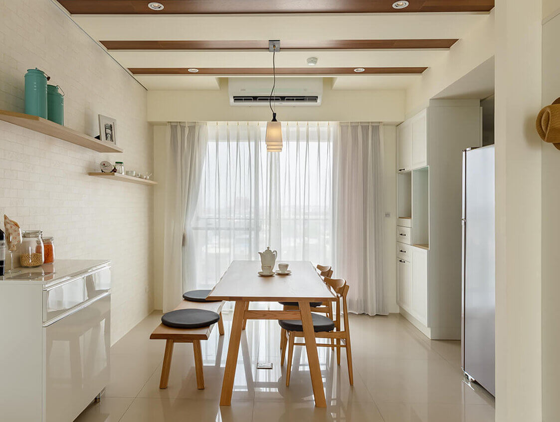 男主人特選的白色單品櫃,強化了餐廳收納與用餐的機能性。