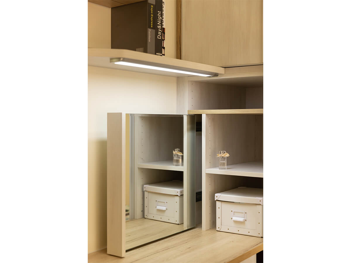 書房大樑下的畸零空間,被設計師巧妙運用系統櫃變化為收納間