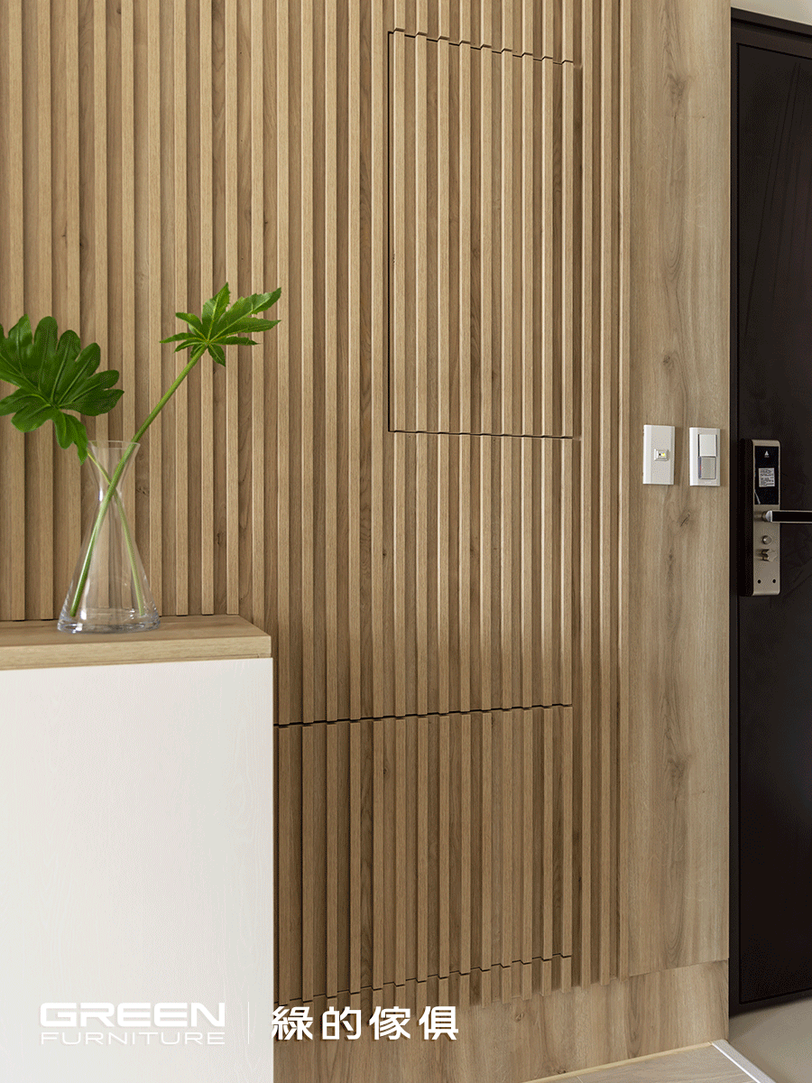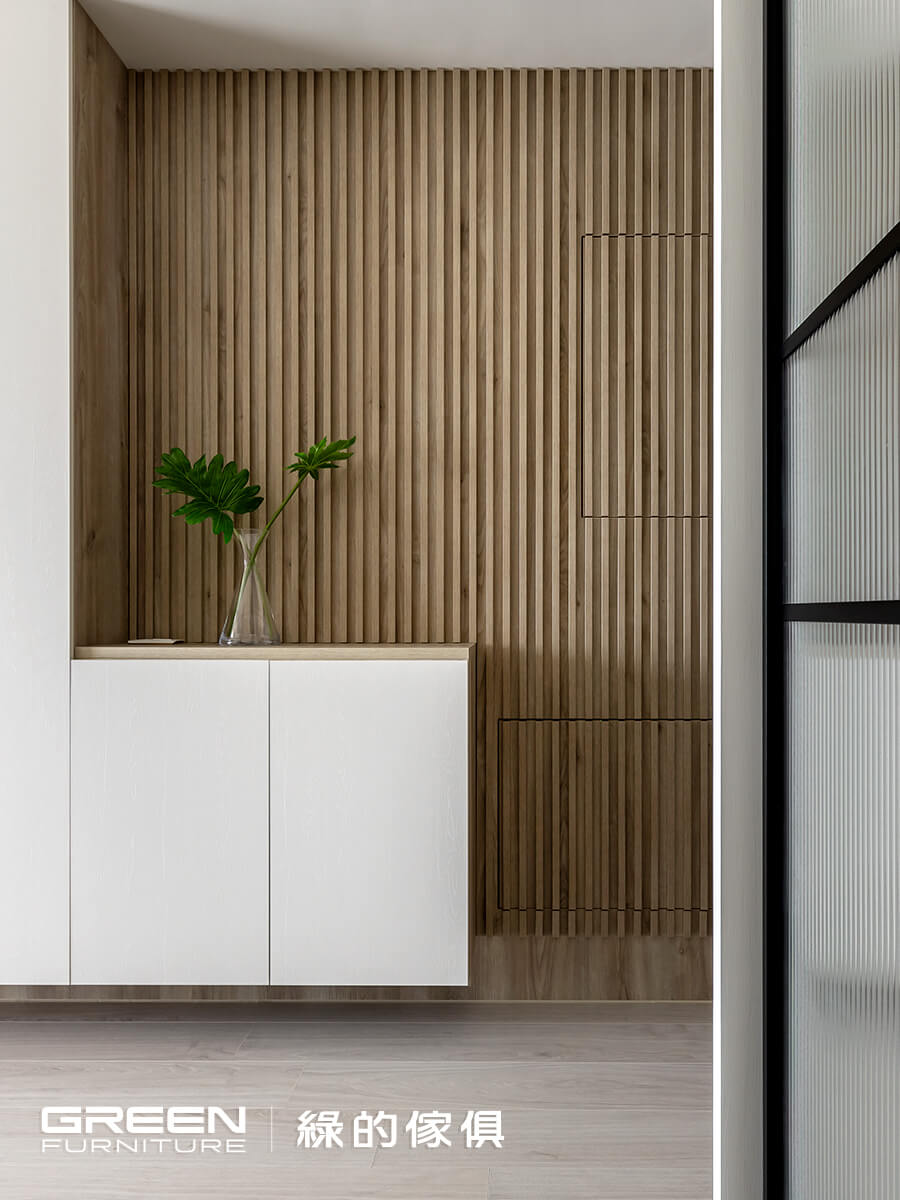 玄關設計不僅引導視線、界定空間,入門瞬間有如走入自然場景。設計師細膩丈量尺寸,完美融合,突兀也不干擾視覺,展現玄關設計實用美感之間完美平衡。搭配綠意栽,成為每天回家視覺焦點。