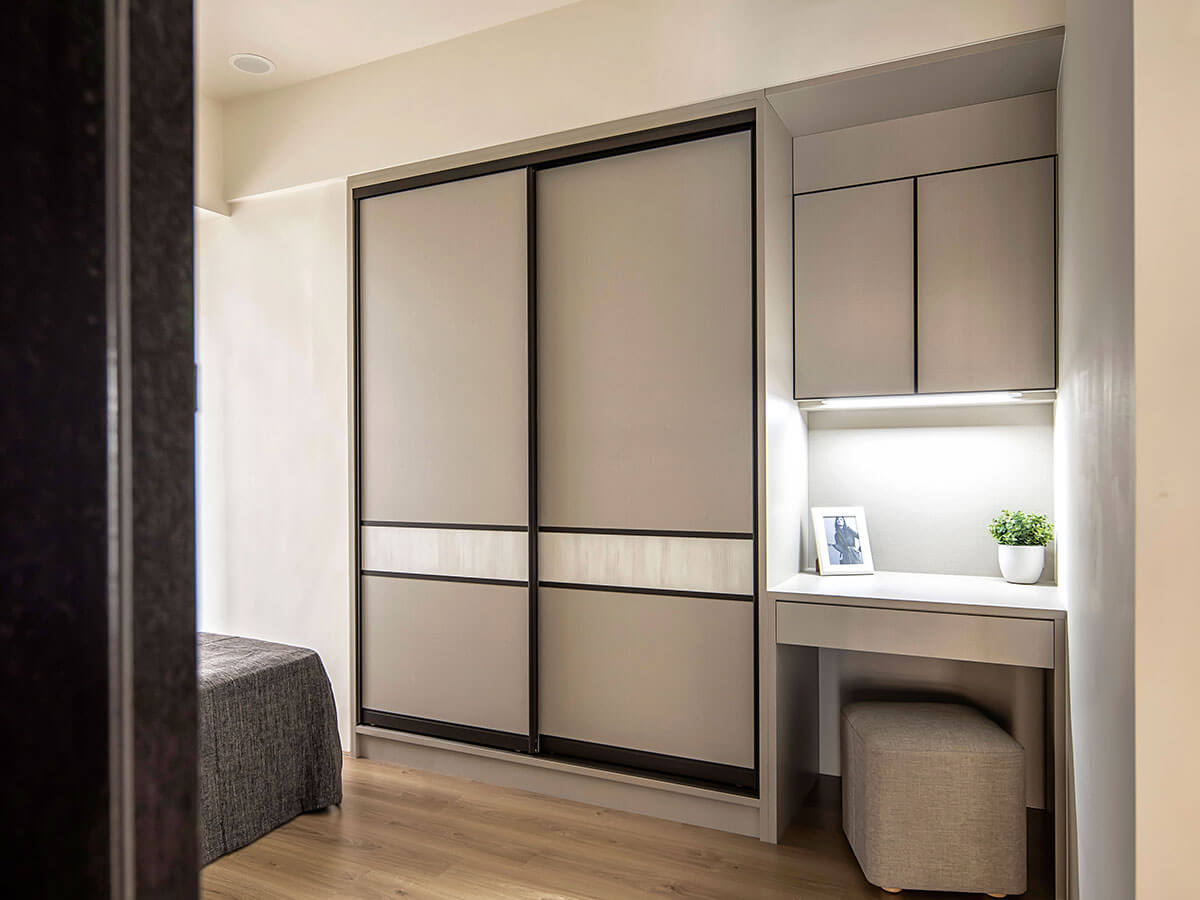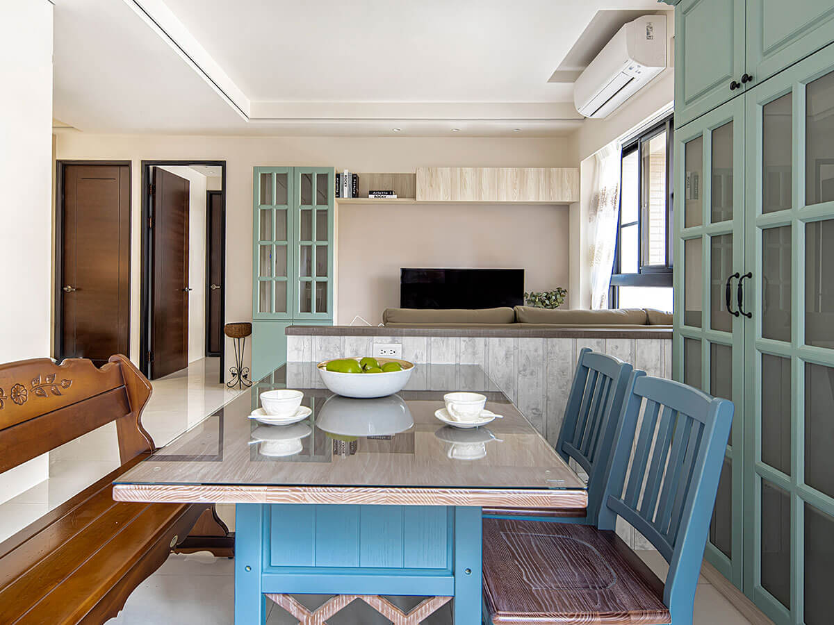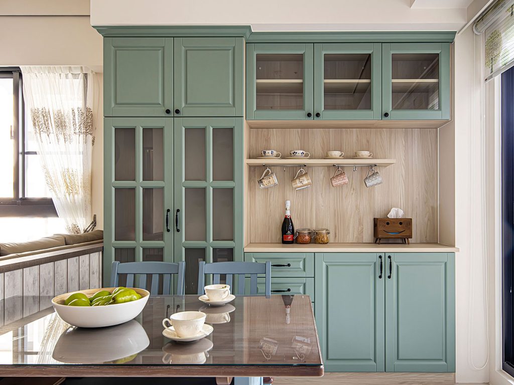從年輕時期就隨著丈夫奔波事業而遷居,每每裝潢過後想感受「家」的歸屬感,卻總不到位,此次看上了鳳山區全新華廈面對公園,環境清幽,中庭花園等等公共設施都相當稱心,選中的這戶寓所還附帶大面積的露台空間,讓嗜好園藝的蘇小姐能充分享受退休的樂趣,因此拍板定案搶進。蘇小姐原就住在「綠的傢俱」鳳山店附近,也看過「綠的傢俱」網站上的案例,決定到門市諮詢,這才瞭解到以往找傳統工班裝潢,並沒有圖樣可事先預知裝潢後的樣貎,結果總是不如人意,而「綠的傢俱」Grace完全依照她的需求規劃和提供適當的建議,確保施工依照3D模擬圖進行,「真的又放心,又滿意。」歐式鄉村風系統櫃的線條、色調,深獲男女主人,尤其從透天厝搬進華廈公寓,鄉村風綠色系的系統櫃氛圍正好和落地窗外露台的花花草草相映襯,有呼應空間的效果,置身其間,天天都自在舒適。
