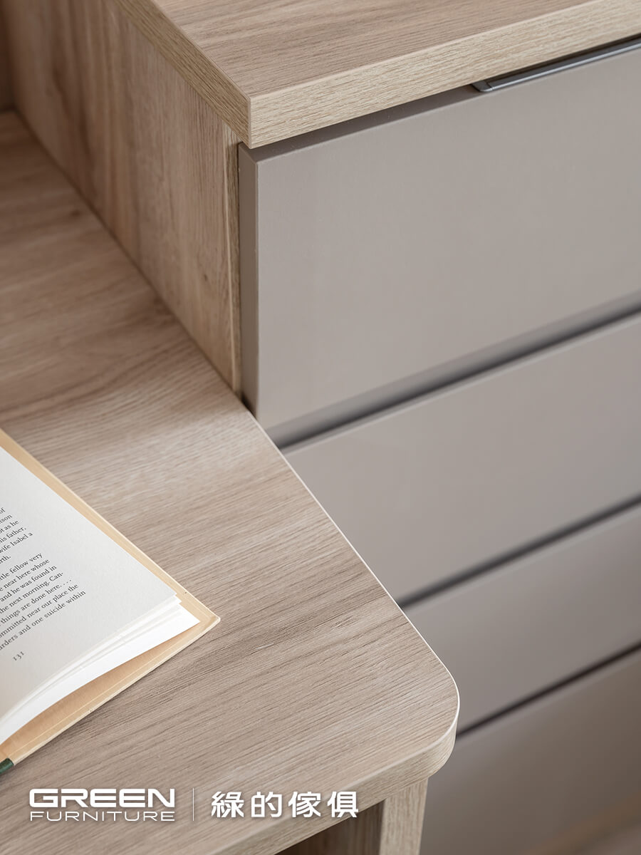 住在門市附近的蔡先生一家,在購置有著 14 年屋齡的中古屋後,便開始尋找合適的設計團隊。因本身對系統傢俱施工期短、品質穩有一定程度的瞭解,所以依循地利緣故,走進「綠的傢俱」門市諮詢,蔡太太也在一開始就坦率地表示,會同時比較其他品牌與設計公司。
