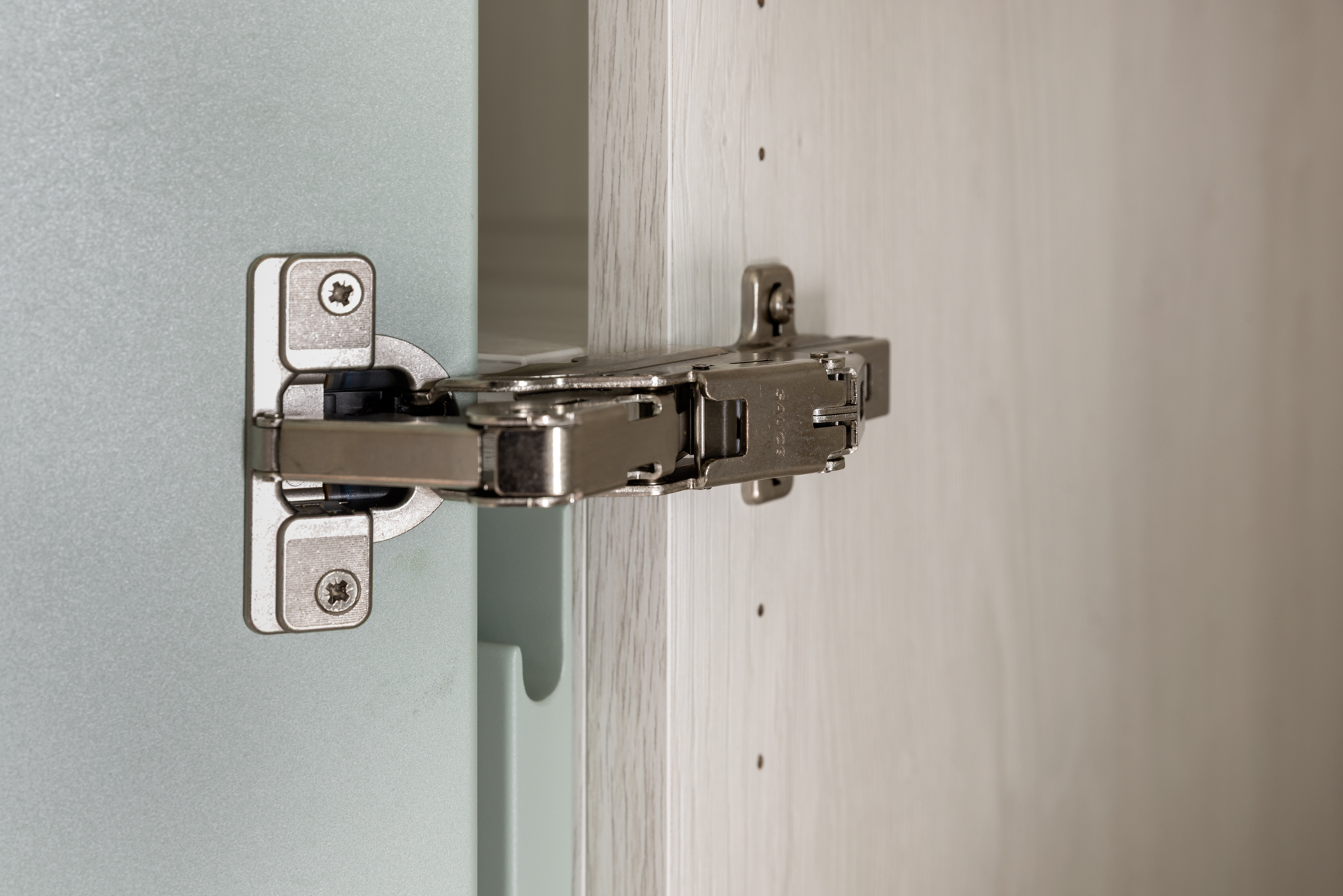 綠的傢俱系統櫃體鉸鍊選擇,義大利進口品牌SALICE。靜音順暢、經久耐用,每一次的開合都是享受。