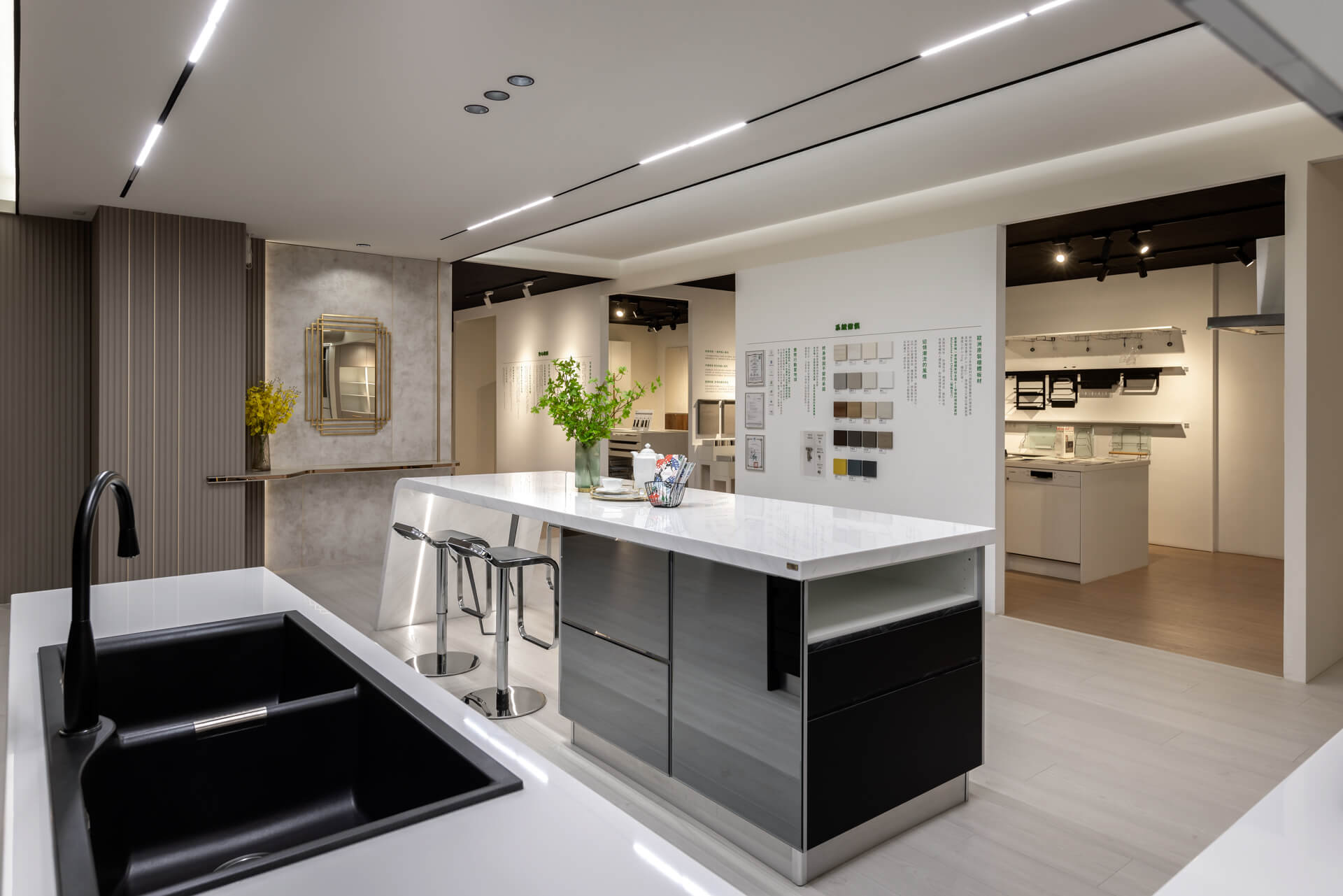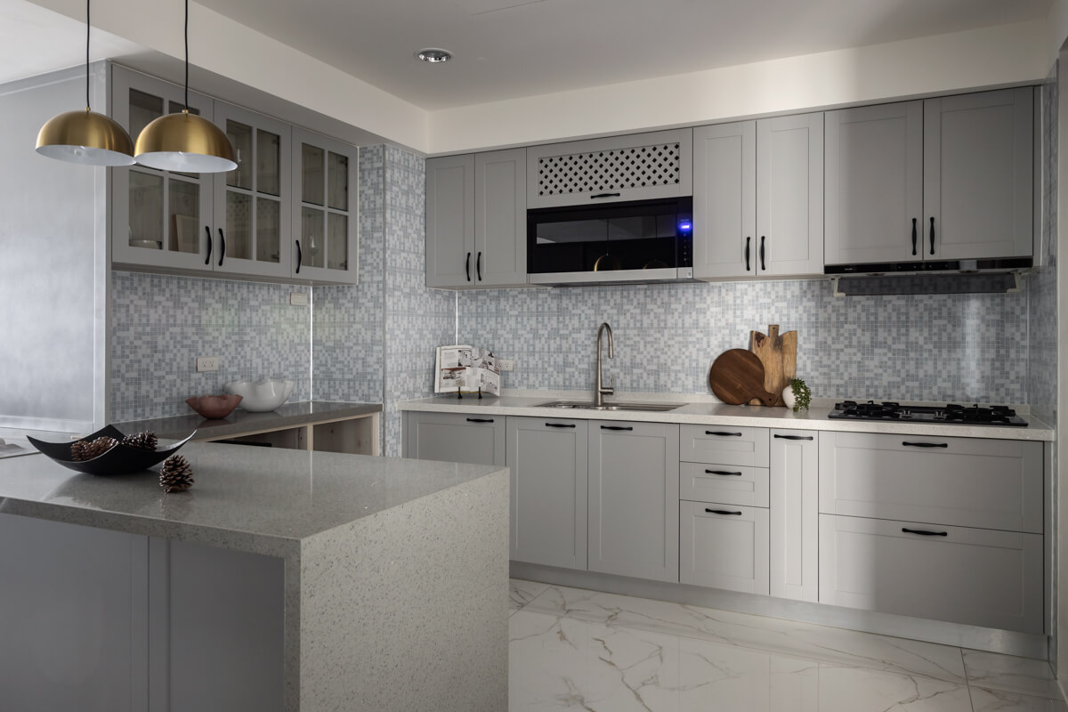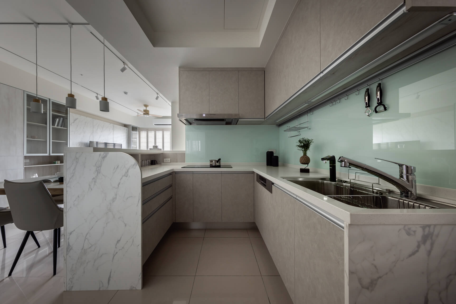 靠近瓦斯爐的區域,建議使用具耐熱與防火性能的材質;水槽區域則需防潮防霉,並設計排水良好的底板結構,提升整體耐用度與衛生性。