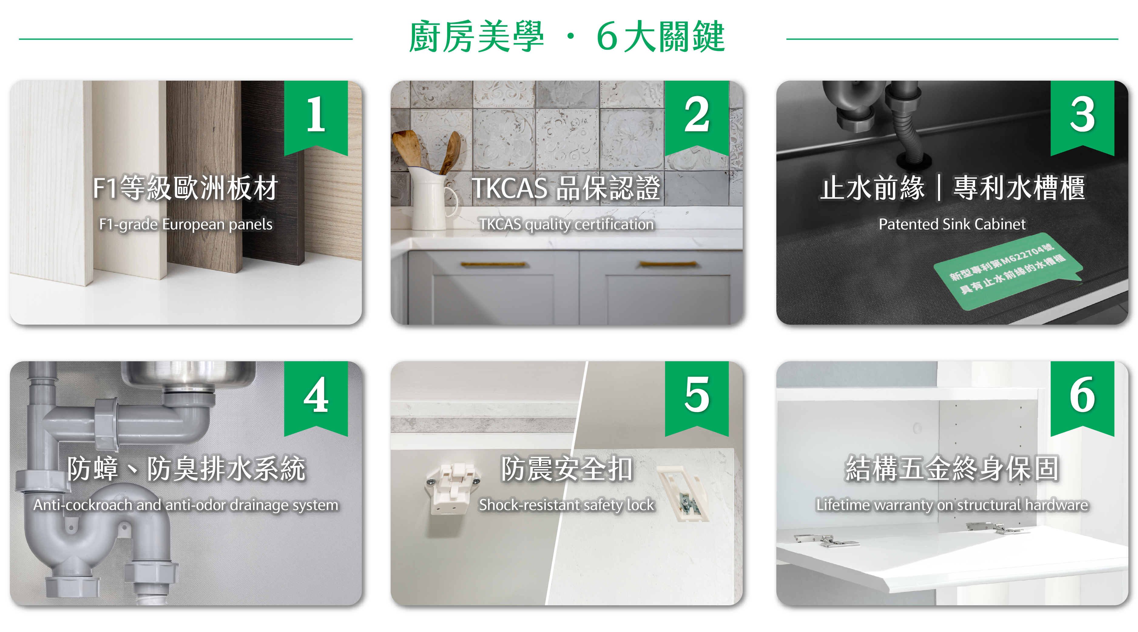 為什麼選擇綠的傢俱?這 6 大廚房安心優勢,讓你裝修更放心、使用更長久: