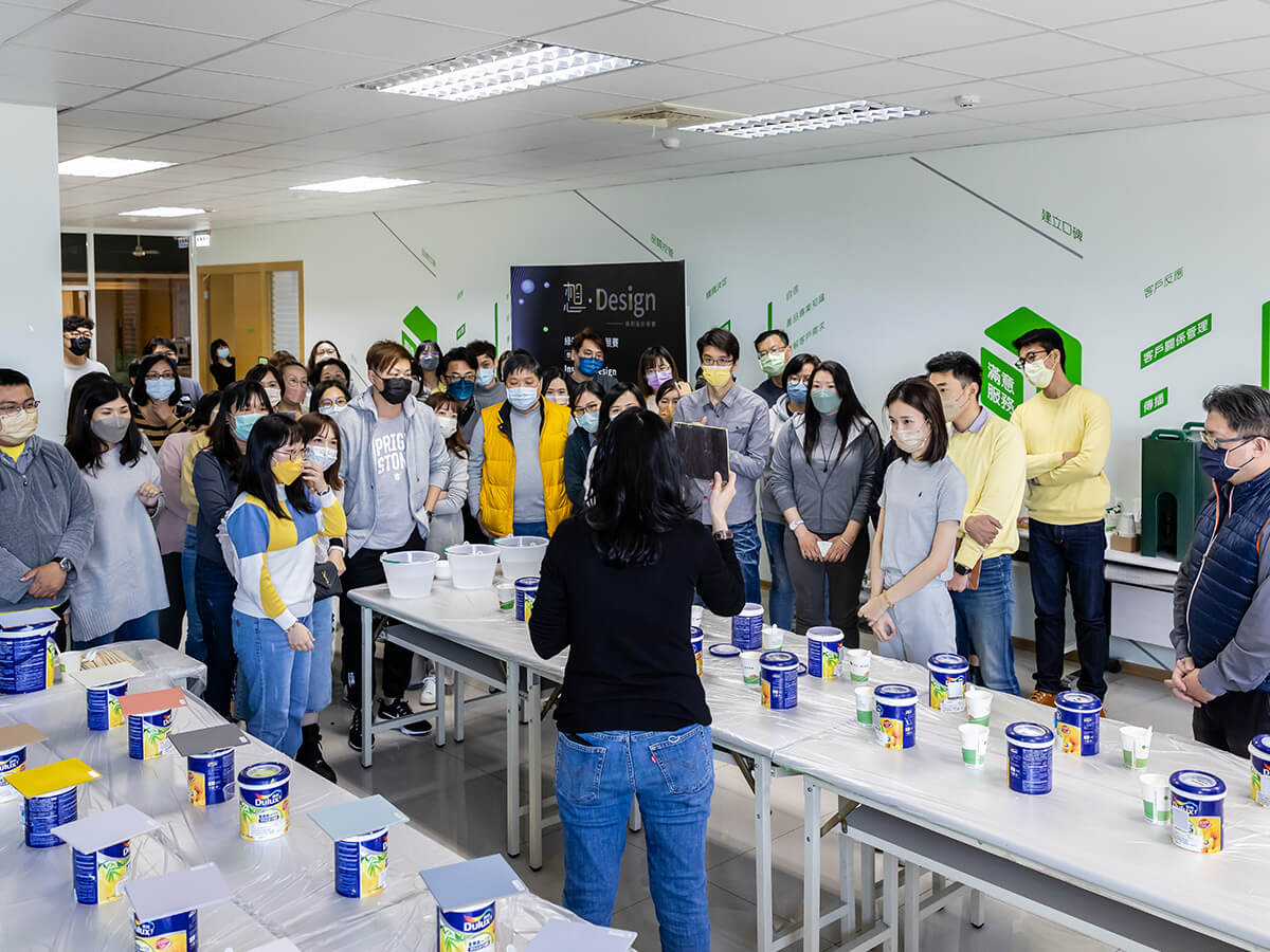 儘管是第一次舉辦設計類的競賽,來自綠的傢俱北中南的系統傢俱設計師卻相當踴躍,也展現過人的熱忱與投入,兩天活動熱鬧非凡,笑語聲不斷。而除了激烈的團隊分組競賽外,為了提升團隊設計力,基於色彩是設計中一個非常重要的元素,綠的傢俱特別請來得利塗料行銷總監楊惠雯及品牌技術團隊擔任講師,分享2022年的色彩趨勢。