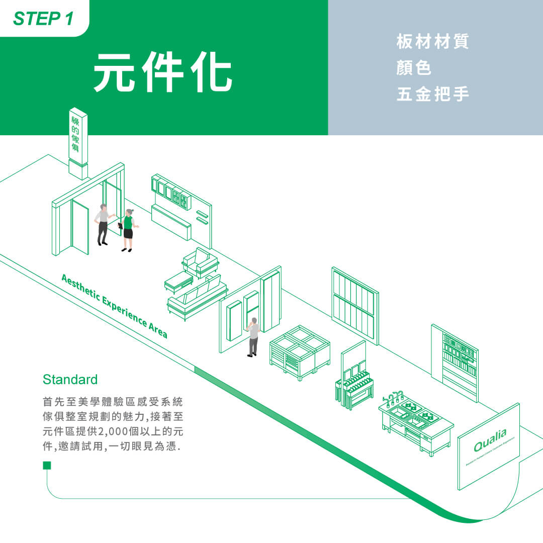 打造可視、可觸摸的建材區與配件區,讓用戶能掌握每個細節的特性與功能。