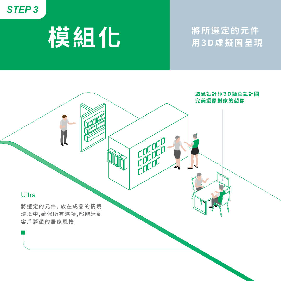 過程中,設計師亦會根據用戶需求給予建議,陪同用戶完成最適切的建材與配件選擇;