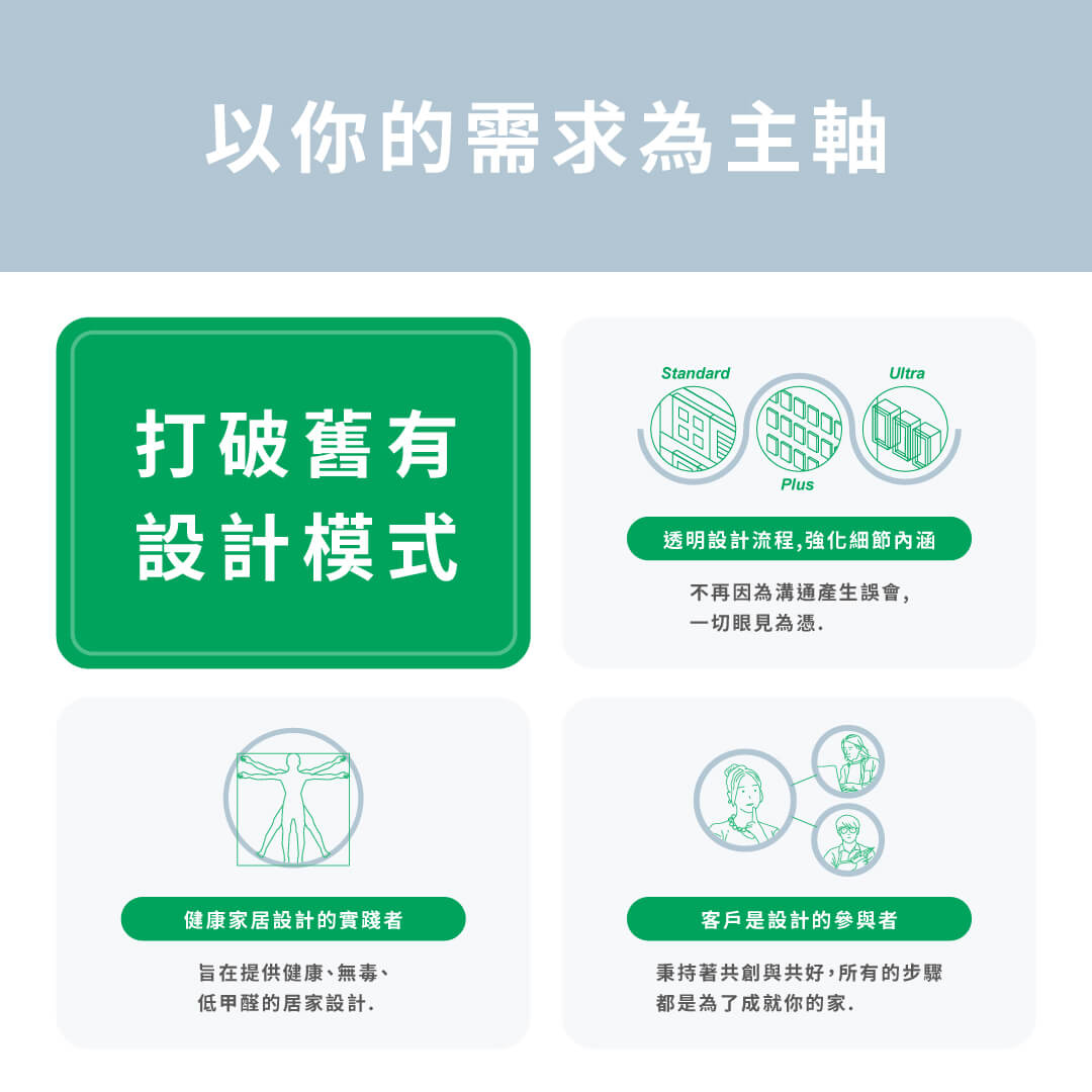 致力為用戶提供 “環保、時尚、安心” 的專屬訂製整體規劃服務。