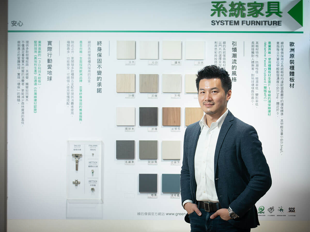全球化浪潮下,人們對環保議題益發重視,加上新冠肺炎全球蔓延,如何建構健康、安全又兼顧環境友善的生活成為顯學。系統傢俱是目前國際上非常流行的綠建材,組裝快速有效率,施工過程標榜最低的噪音、最少的汙染,還可以像積木一樣拆裝移動,再組裝還原。綠的傢俱不只在販售讓消費者安心的傢俱,更為消費者提供終身服務!團隊用心思考「如何讓客戶產生感動」,不斷挑戰提升服務品質,也成為國內唯一榮獲「服務品質典範」的企業。