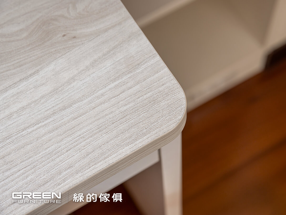 綠的20多年前就採用奧地利百年品牌 Kaindl 的F1等級系統板材,甲醛釋放量低於0.3mg/m³,幾乎趨近於零,符合歐盟最嚴苛標準。板材取自寒帶針葉林,密度高、結構穩固,並經 200°C 高溫處理,具防潮、防蟲、防刮與耐燃特性,安全又耐用。