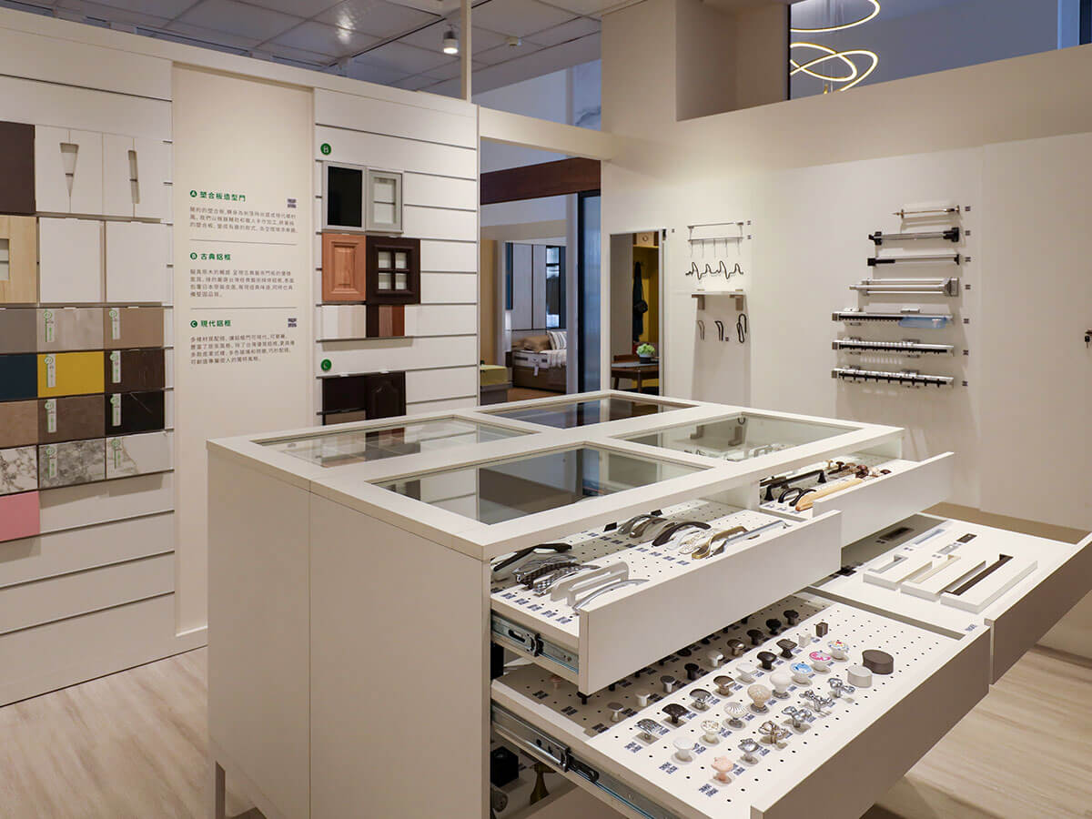 文心旗艦店首度將系統櫃的相關板材,全部陳列出來讓消費者親身體驗感受。