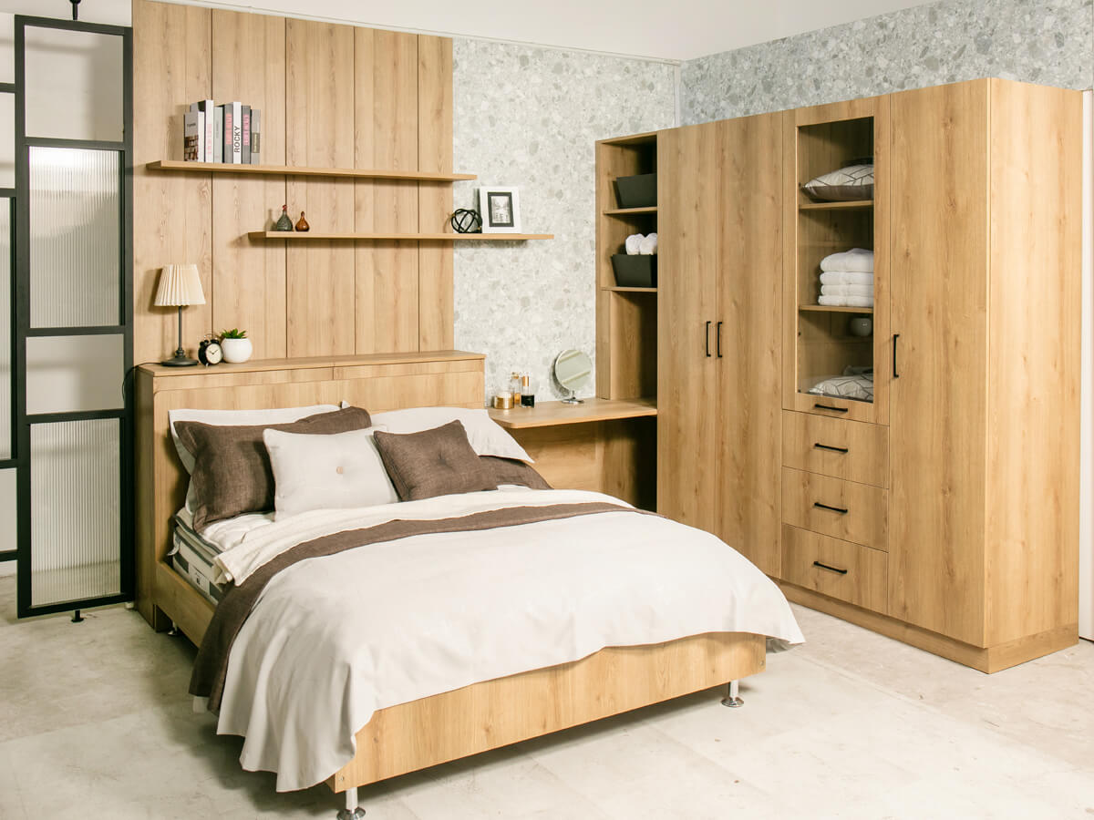 由於有愈來愈多的消費者要求,加上市場對於客製化與專屬訂作系統家具的強大需求,當時來自消費者對於客製化與專屬訂作系統家具的強大需求,讓吳益財必須回到源頭和生產端溝通。「以前我們的櫃子是由大工廠量產,尺寸不能改,一開機可能就要生產五百組才符合成本,庫存是一大問題。」而且一旦尺寸更改,連同上下底板、側板都要一起改,一下子損失上千萬的板材。