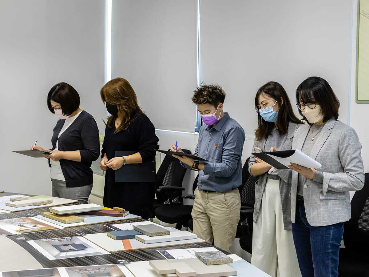 當追求卓越、精進不懈成為企業全體人員的唯一共識,自然也就形成第一線人員的最強後盾,加上全方位的培訓機制,使綠的傢俱有著傲視群雄的高度專業性,在首度舉辦的「想.Design」系統設計大典中顯露無遺。第二天的競賽主題,正是延續第一天所構思的「影像板(Image Board)」,各組成員須在 120 分鐘內,將當日所採集的設計元素投放於主辦單位規定的空間中,同時必須扣合主題概念。