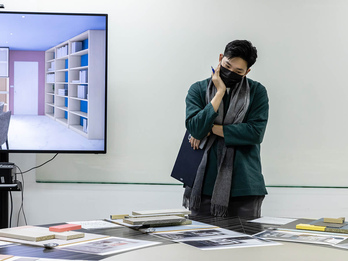 在 2022 的年度趨勢新品,即從 24 節氣提取出 8 個時節:立春、春末、立夏、盛夏、立秋、霜降、立冬與大寒,從系統板材的紋理色澤到五金把手的樣式,令人耳目一新,呂玉惠自豪地說:「我們以主題概念,將設計美學推廣給每位客戶。」她也表示,「玩塑合」是今年度的重點,不僅只是加工,而是將系統板材演繹出多元形式,如同挹注中式的窗櫺格紋、日式的千本格柵,使講究健康、重視環保的人,也能有不一樣的風格選項。