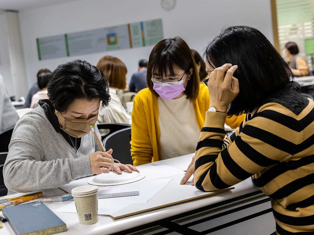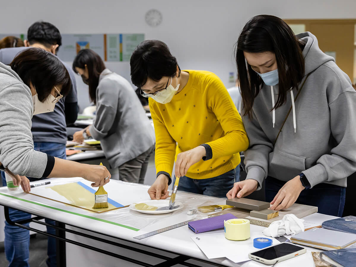 聊及此次的評選標準,鍾玗珊神色認真的說:「顏色是主觀的,所以我們將以搭配性、協調性以及主題契合度進行評分,而加分項目主要著重在小巧思與表現手法上。」當競賽拉開序幕,即能看見各方人馬在白紙上振筆疾繪,當初步構思拍板定案後,隨即各司其職、立即上工,有的開始發想文案、有的專門塗刷油漆、有的則負責協調統整,在井然有序的分工下,原本空白的木板,一筆一畫堆疊出各種繽紛想像。