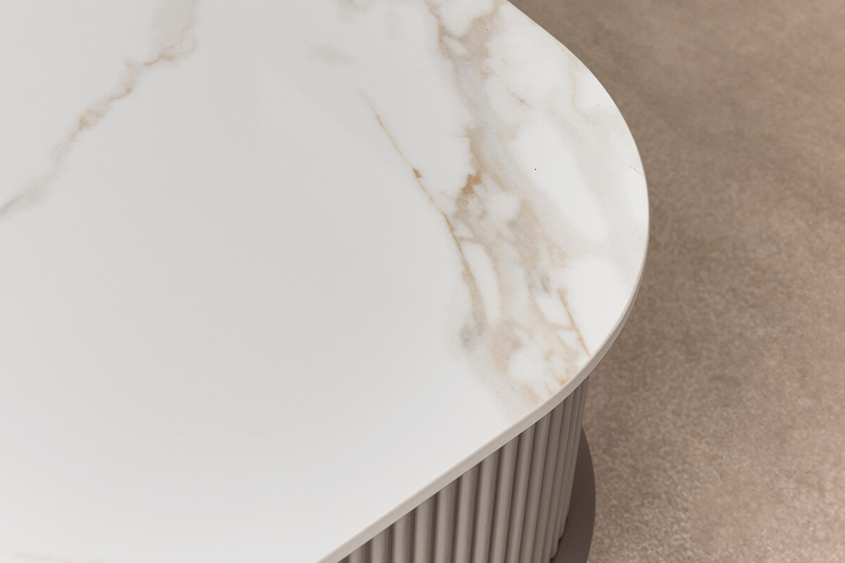 側邊選用溫潤燕麥色調,搭配細膩的垂直格柵設計;
