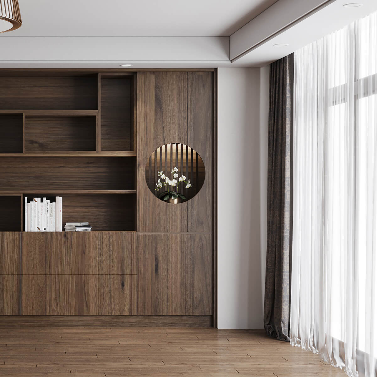 從日式的傳統語彙擷取設計靈感,以障子門、千本格子、圓窗與雪見障子當作切題,萃取出簡約線條、天然質材與曖昧模糊的關鍵詞,圍塑素樸靜美的空間氣質,有條不紊的層次關係,同步體現簡潔無雜的秩序之美,回家就能感受純粹淡雅的和風底蘊。