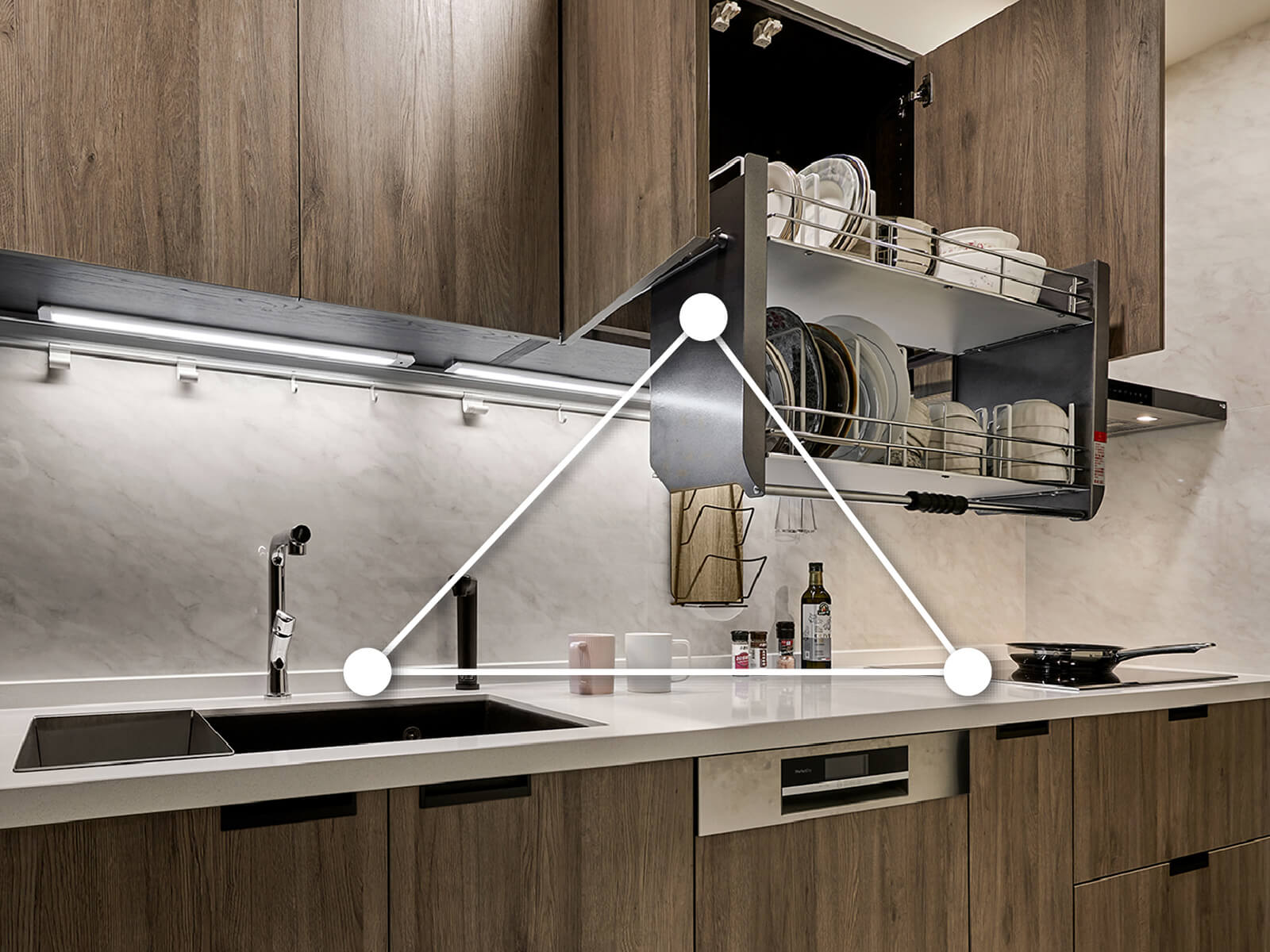 廚房最佳空間規劃最理想的廚房動線,取擷於收納、洗滌、烹飪三大區塊的整合。綠的安心廚房提供您最佳的設計諮詢,提供最適合使用者的廚房空間。